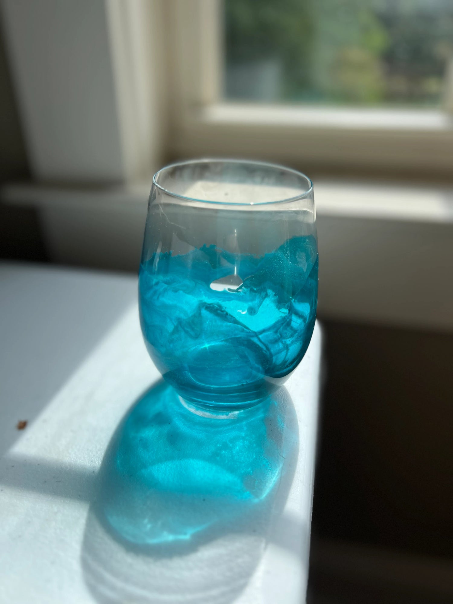 Custom-colored epoxy and alcohol ink stemless wine glasses. Each one unique and Hand painted by me! Enhance your drinking experience with these stunning stemless wine glasses. Each glass is hand-painted using a special customized coloring process that ensures you'll receive a truly unique piece.