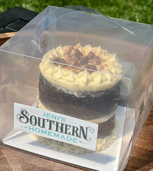 Introducing our Mini Carrot Cake, a long-time family favorite now available in an adorable personal-sized treat. This petite delight is meticulously handcrafted with the perfect blend of spices, creating a taste sensation you'll always remember. Our homemade cream cheese frosting is generously layered between two scrumptious tiers of moist carrot cake, offering the ultimate balance of sweetness and spice. To complete this irresistible dessert, a sprinkling of candied pecans adorns the top, adding a touch of crunch and elegance. Experience the joy of a classic carrot cake in a charming, miniature form that's perfect for any occasion.