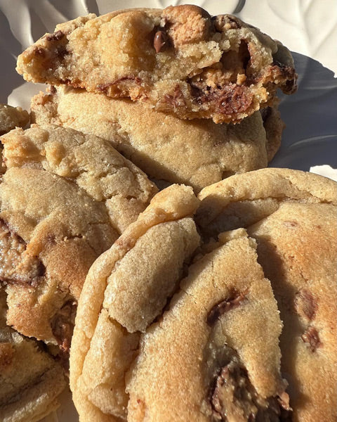 Take our famous homemade cookie dough, mix in some creamy peanut butter, and top it with Reese's Cups. This cookie pairs perfectly with a tall glass of milk and your favorite Netflix show.